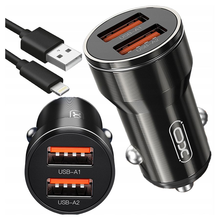Авто ЗУ 2USB XO CC48, черное, Lightning, 12Вт