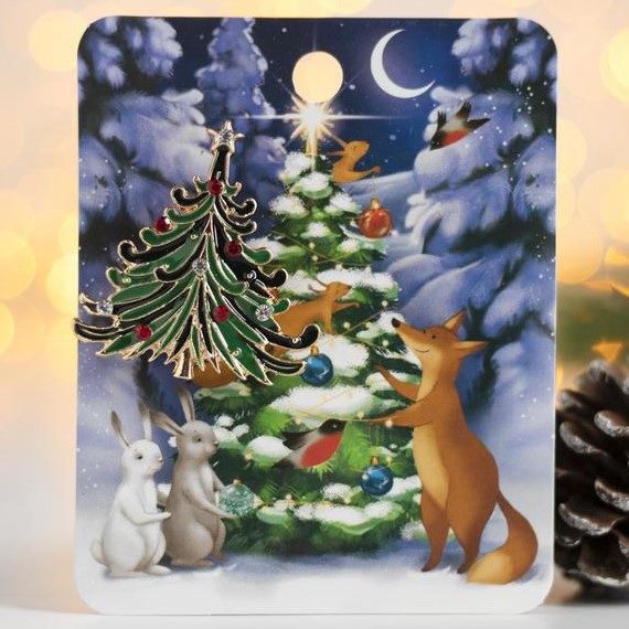 Брошь новогодняя "Ель" пушистая, цвет зелёный в золоте 4965487