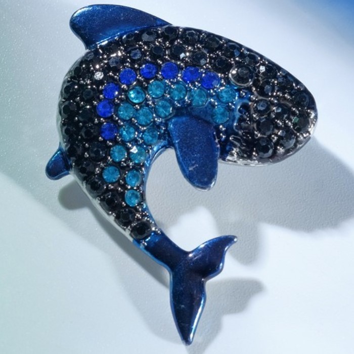 Брошь "Акула", цвет синий в серебре