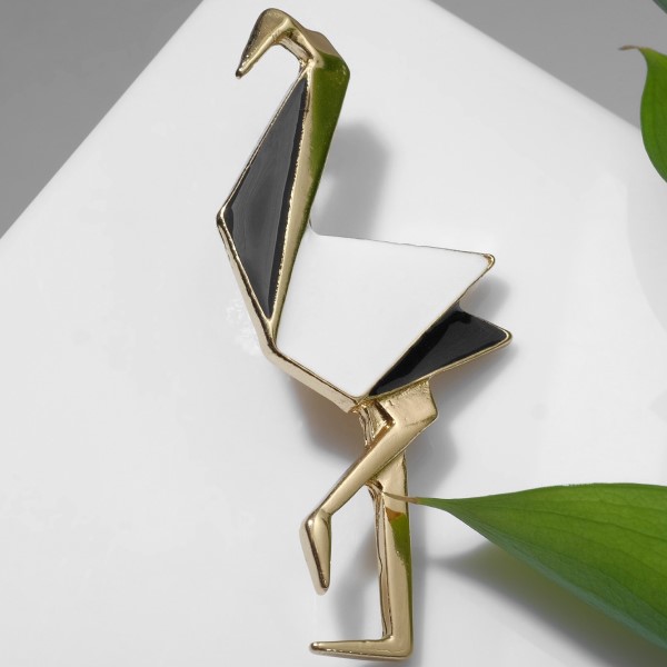 Брошь "Геометрия" фламинго, цвет чёрно-белый в золоте