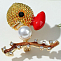 Брошь "Птенец" на ветке, цветная в золоте 7624572