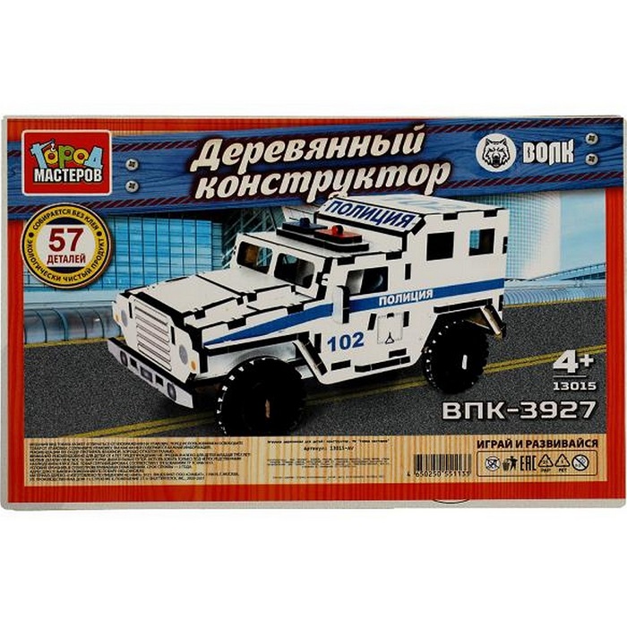 Конструктор деревянный «Бронемашина. Полиция», 57 деталей 10102756