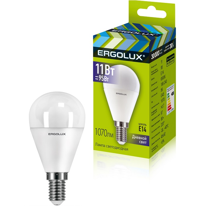 Лампа светодиодная ERGOLUX G45 11W/6500K/E14