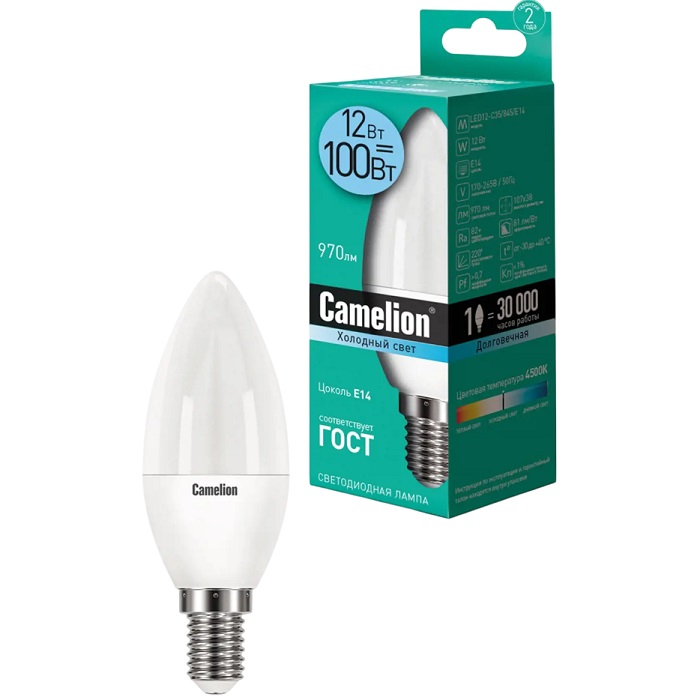 Лампа светодиодная CAMELION C35 12W/4500К/E14