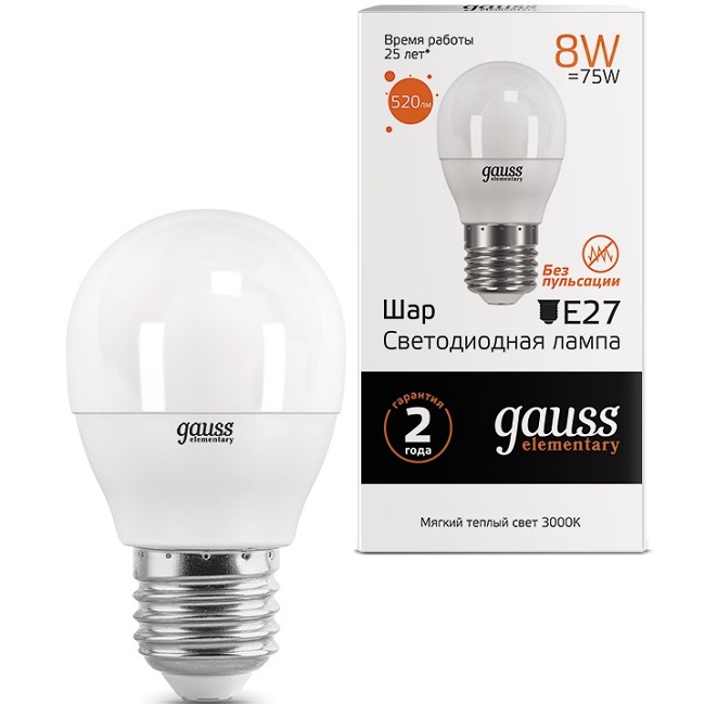 Лампа светодиодная GAUSS Elementary Globe 8W/3000K/E27