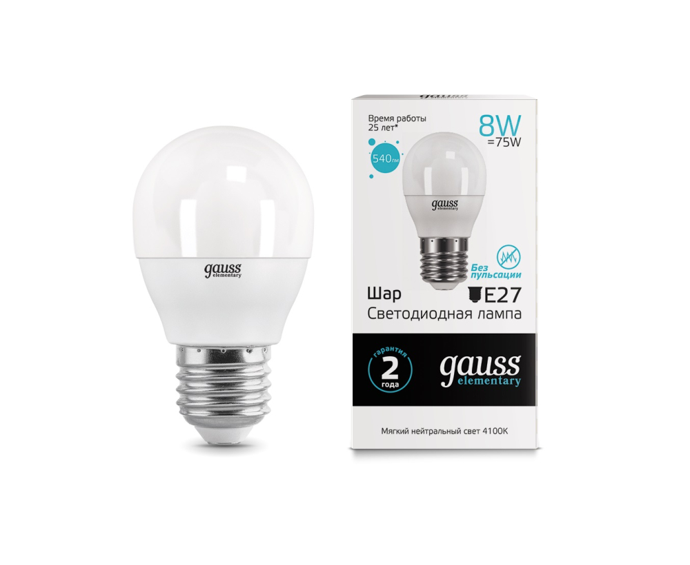 Лампа светодиодная GAUSS Elementary Globe 8W/4100K/E27