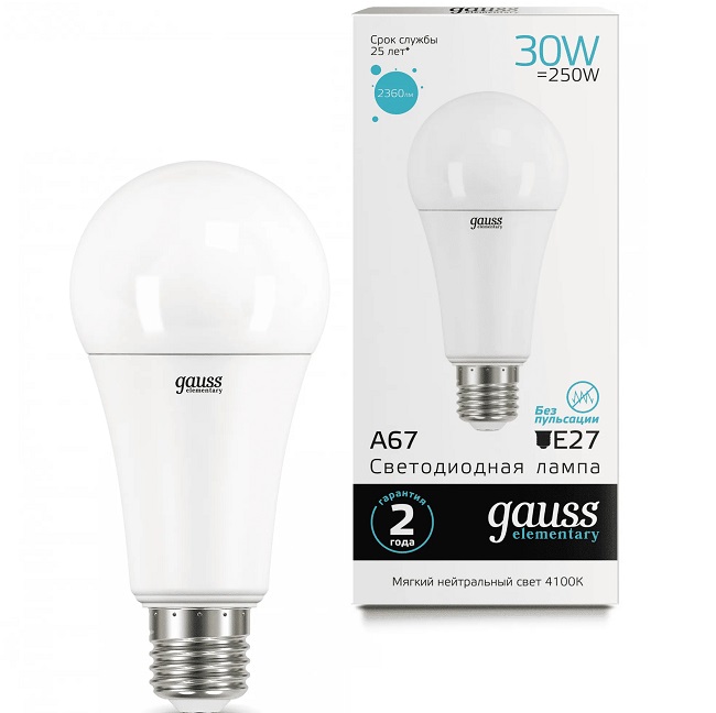 Лампа светодиодная GAUSS Elementary A67 30W/4100K/E27