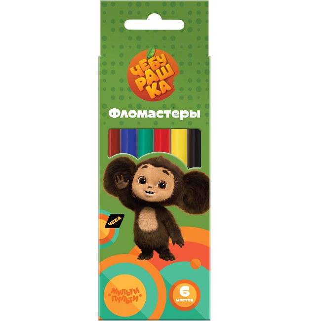 Фломастеры Мульти-Пульти "Чебурашка", 06цв., смываемые, картон, европодвес ФЛЧБ_53014