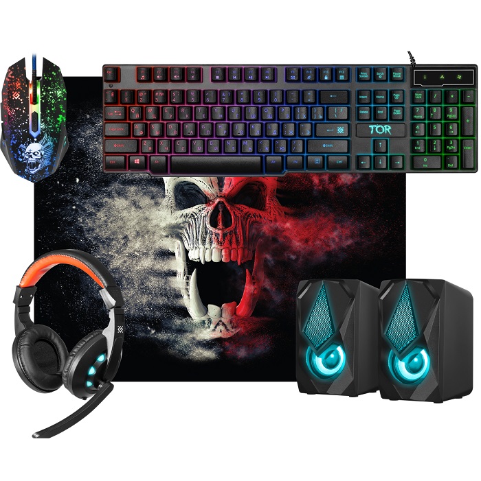Набор DEFENDER Tor MHP-127 (мышь+клавиатура+гарнитура+коврик+колонка)