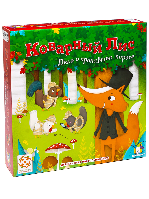 Коварный лис — очень интересная карточная игра, рассчитанная на детей, но при этом с успехом имитирующая процесс детективного расследования. Совместно изучая улики, тренируя внимательность и логику, дети сумеют изловить коварного лиса, который похитил пирог и теперь спешит с ним в свою нору, а также на живом примере поймут, как важна командная работа.