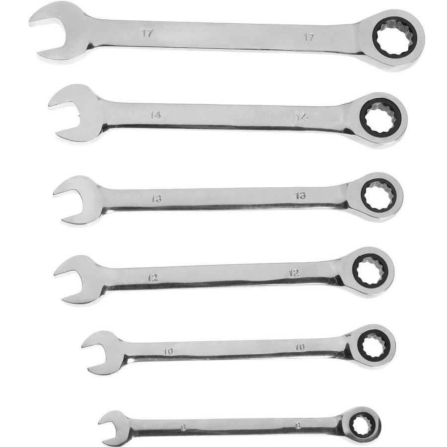 Набор ключей комбинированных трещоточных ТУНДРА, CrV, 72 зуба, 8 - 17 мм, 6 шт. 4657127
