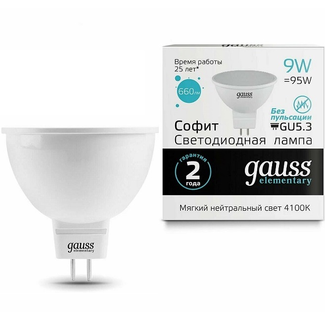 Лампа светодиодная GAUSS Elementary MR16 9W/4100K/GU5.3