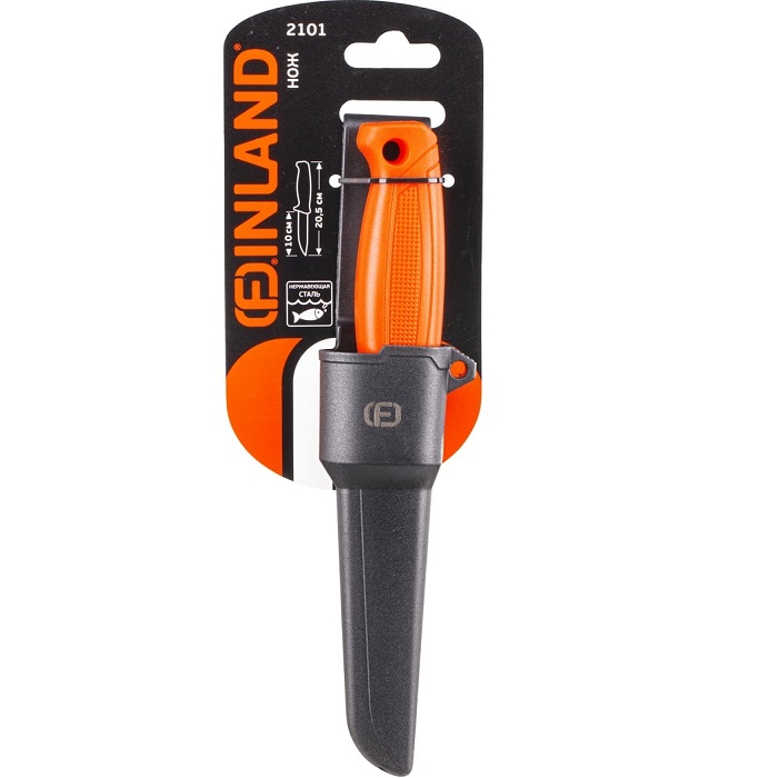 Нож, лезвие 100 мм FINLAND 2101, нержавеющая сталь, пластиковые ножны