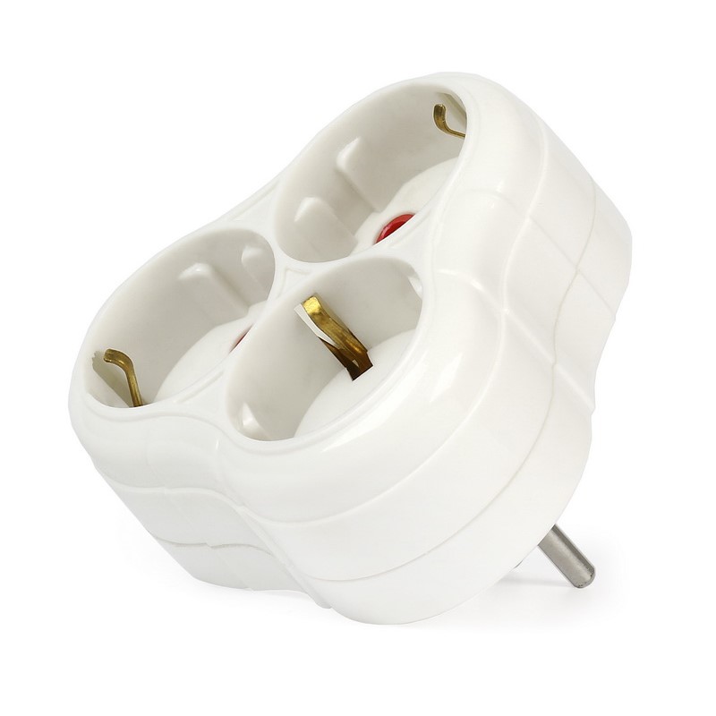 Тройник 3гн. 16А 250В с заземлением круглая белый (SBE-16-A01-3z)