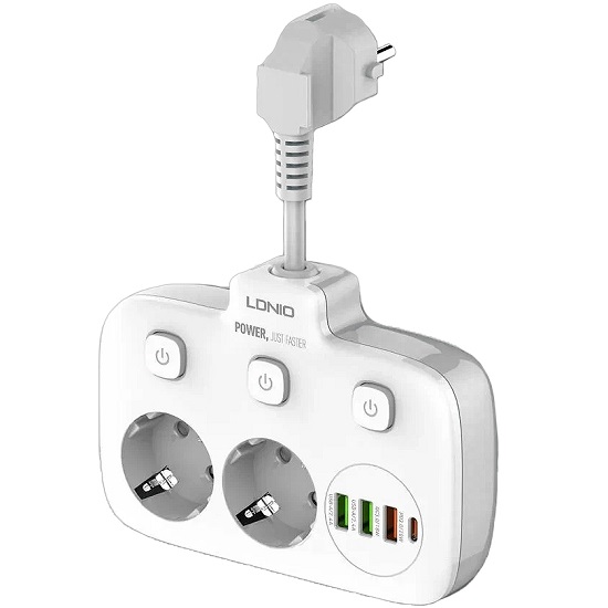 Сетевой фильтр LDNIO SC2435, 2 розетки + 3 USB 2500W
