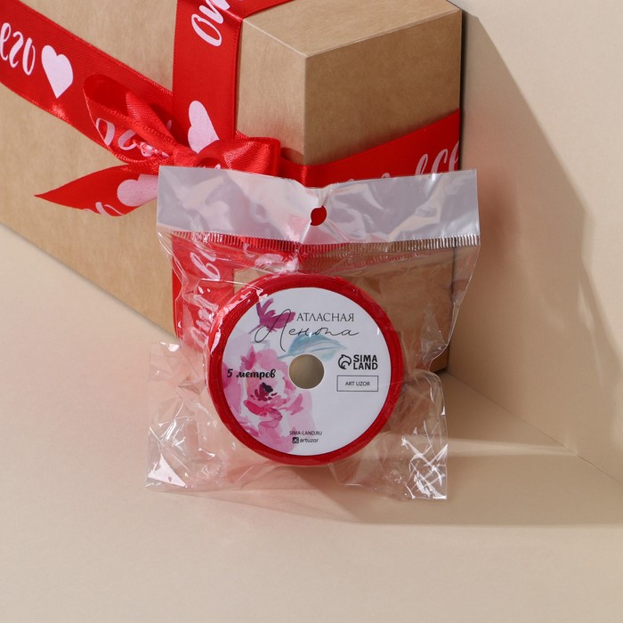 Лента атласная «От всего сердца», красная, 4 см × 5 метров