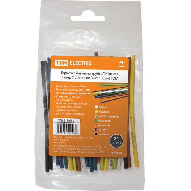 Термоусаживаемая трубка набор TDM ТУТнг 2/1, 7 цветов по 3 шт. 100мм