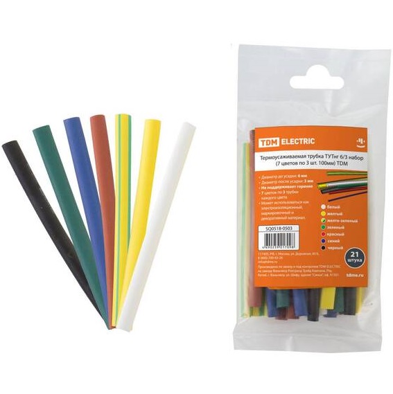 Термоусаживаемая трубка набор TDM ТУТнг 4/2, 7 цветов по 3 шт. 100мм