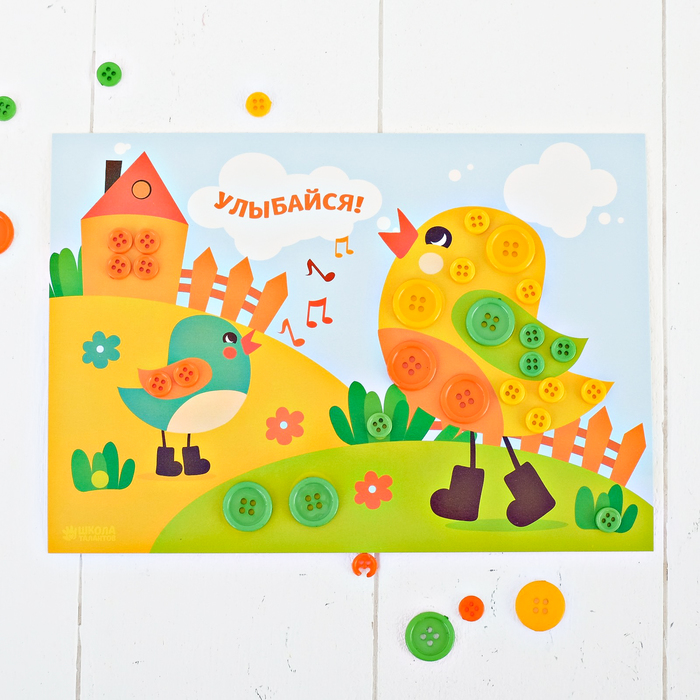 Открытка пуговками "Улыбайся", 15х21 см Школа талантов 3930351