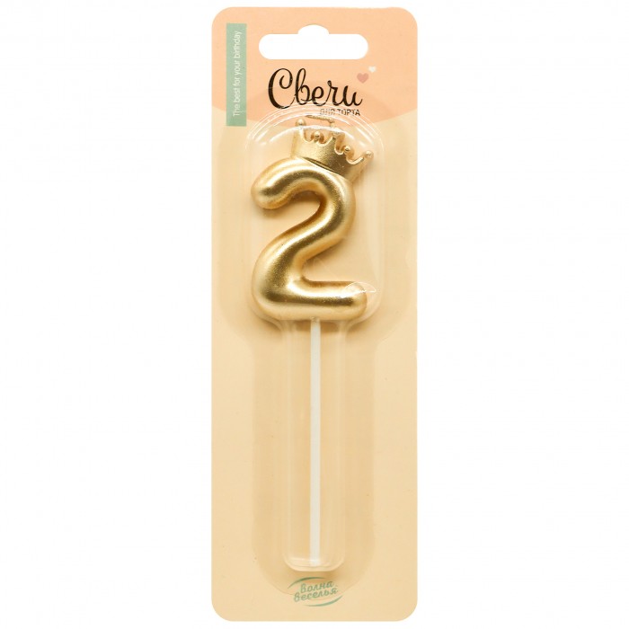 Свеча Цифра, 2 Корона, на шпажке, Золото