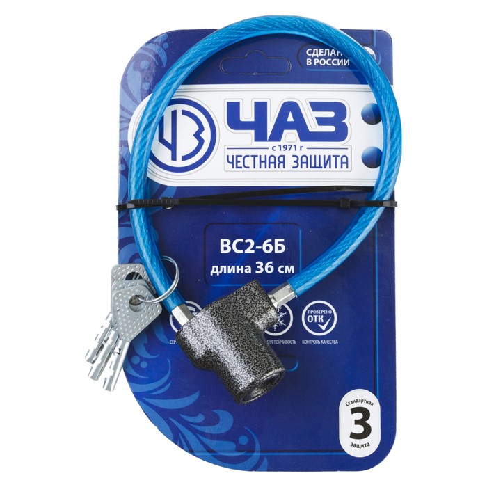 Замок тросовый "РОССИЯ" ВС2-6Б, 350 мм, дисковый механизм 3330575