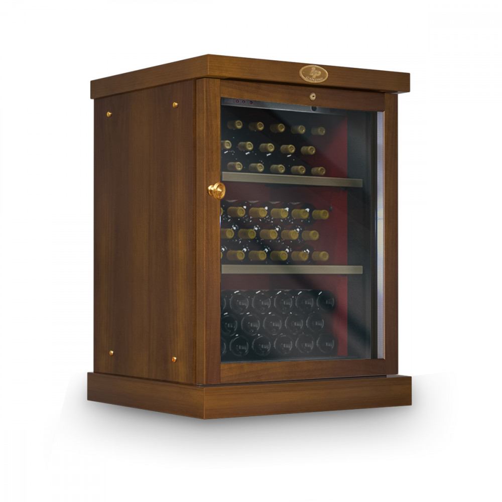 Корпус винного холодильника CEXP 151 NU выполнен из металла в деревянном коробе Risto Line в цвете орех. Дверца с двойным тонированным стеклопакетом с защитой от уф лучей, имеет встроенный замок и удобную ручку в классическом стиле.
