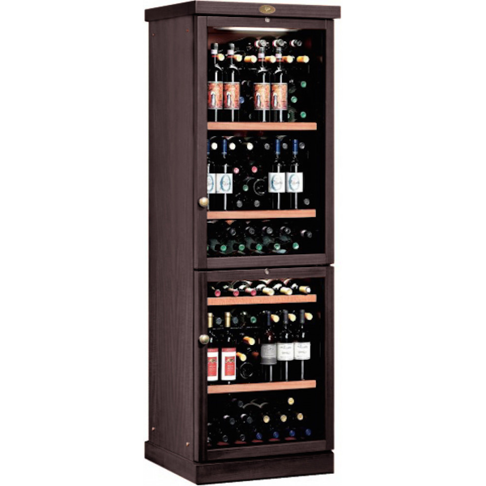 Корпус модели IP Industrie CEXP 601 VU металлический, внешняя отделка винного шкафа выполнена из древесины Risto Line в четырех цветовых решениях. Дверца - из двойного стеклопакета с защитой от уф лучей с удобной ручкой в классическом стиле.